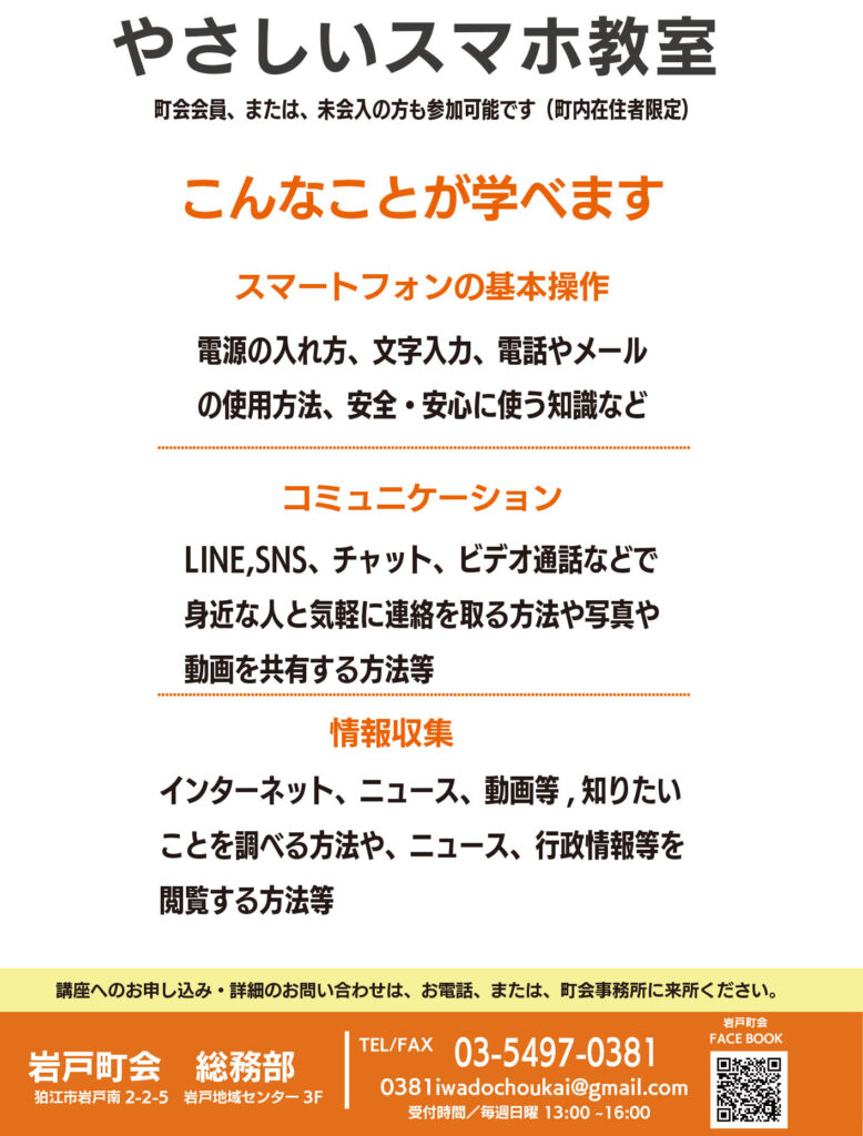 スマートフォンの使い方を学べます。操作に不安を感じている方はぜひご参加ください。